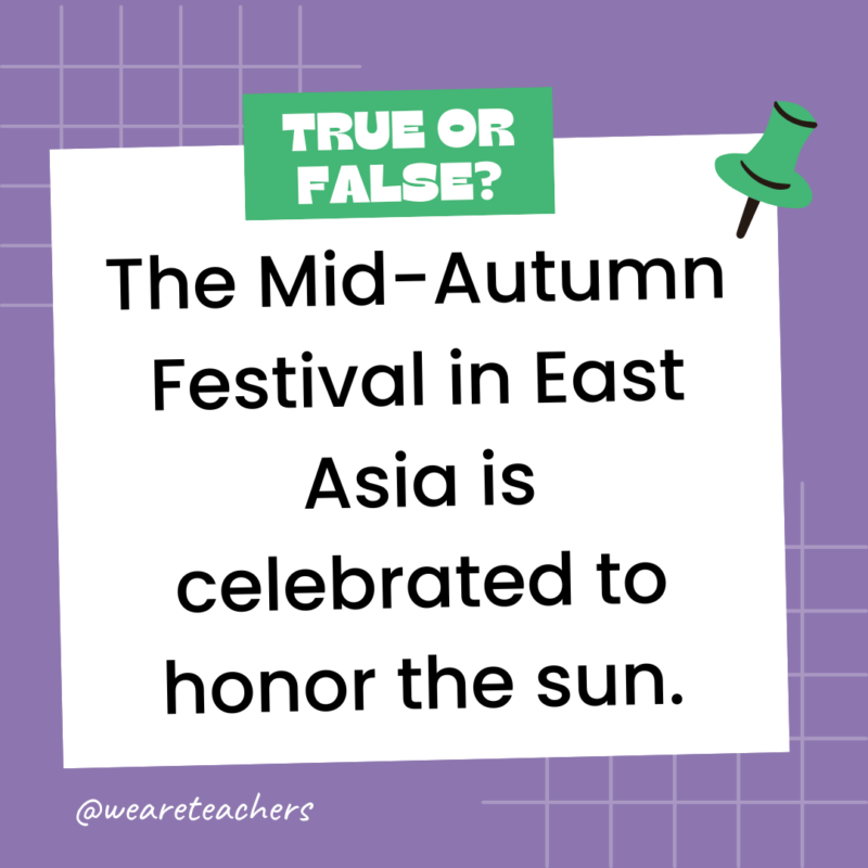 144. True or False: The Mid-Autumn Festival in East Asia is celebrated to honor the sun.