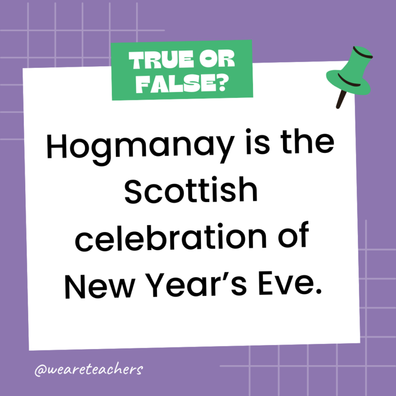 146. True or False: Hogmanay is the Scottish celebration of New Year’s Eve.
