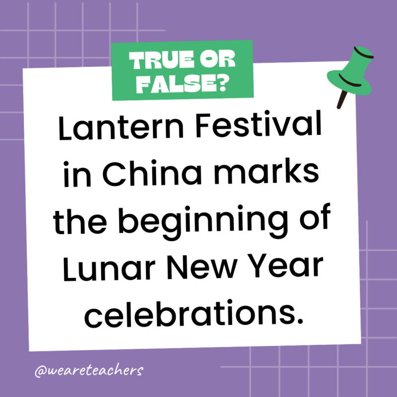 147. True or False: Lantern Festival in China marks the beginning of Lunar New Year celebrations.