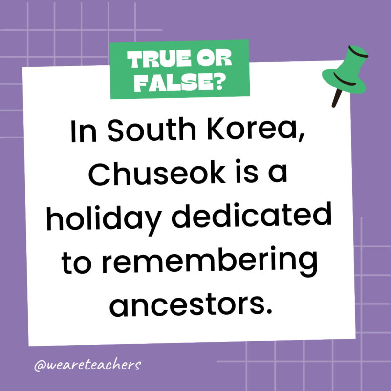 149. True or False: In South Korea, Chuseok is a holiday dedicated to remembering ancestors.