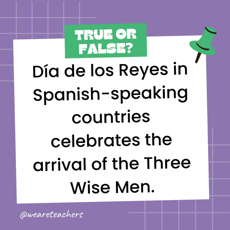 151. True or False: Día de los Reyes in Spanish-speaking countries celebrates the arrival of the Three Wise Men.
