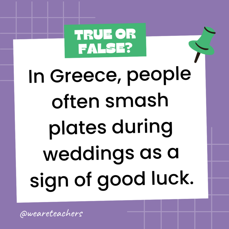 152. True or False: In Greece, people often smash plates during weddings as a sign of good luck.