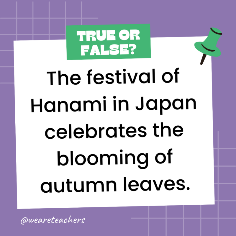 153. True or False: The festival of Hanami in Japan celebrates the blooming of autumn leaves.