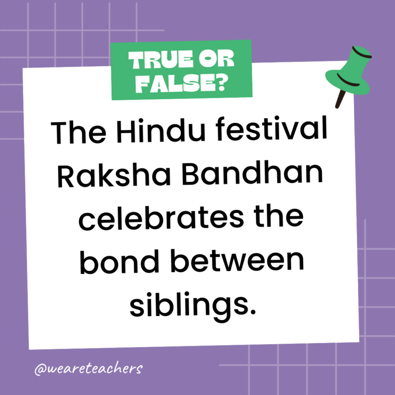 155. True or False: The Hindu festival Raksha Bandhan celebrates the bond between siblings.