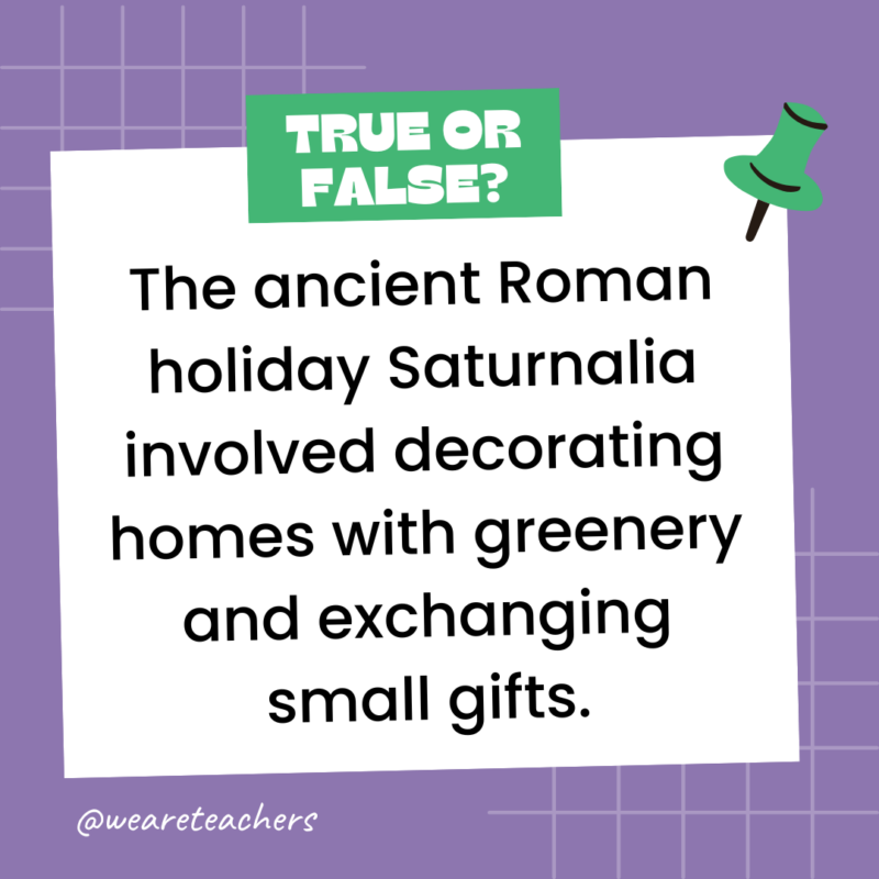 160. True or False: The ancient Roman holiday Saturnalia involved decorating homes with greenery and exchanging small gifts.