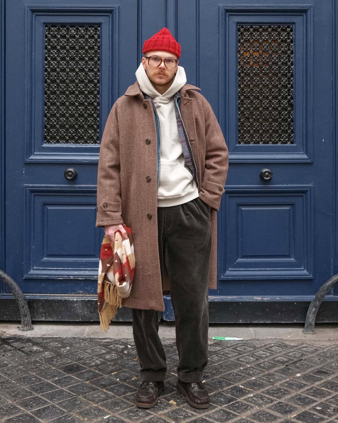 Corduroy pants introduce a subtle workwear edge, soft yet sturdy, while moccasins or Clarks-style shoes keep the look relaxed and functional. A beanie ties it all together. For unpredictable days and shifting plans, this is one of the most practical winter outfit ideas for men.