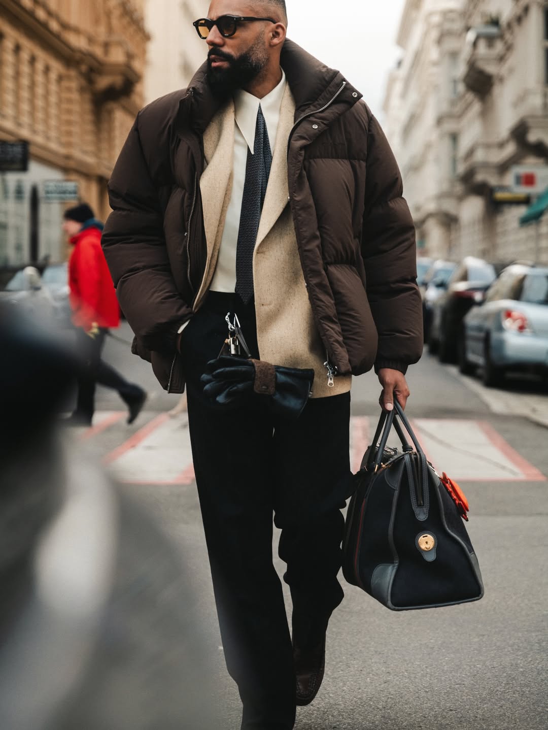 The puffer jacket has more range than it’s often given credit for. Instead of defaulting to athleisure, layer it over a blazer and tie. The contrast is unexpected and remarkably effective. Structured tailoring underneath meets functional warmth on top.