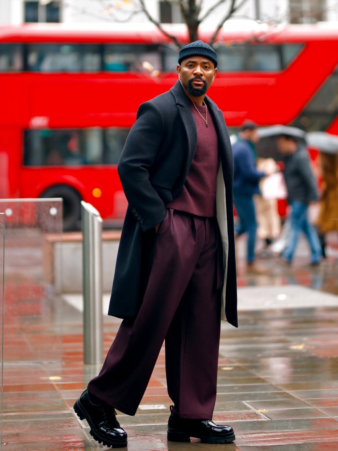 Here, details do the heavy lifting. A brimless cap or newspaper boy hat introduces a cinematic touch—less boardroom, more leading man striding through a crisp city morning. Among refined winter outfit ideas for men, this one shows that formality can still feel warm, human, and seasonally aware.
