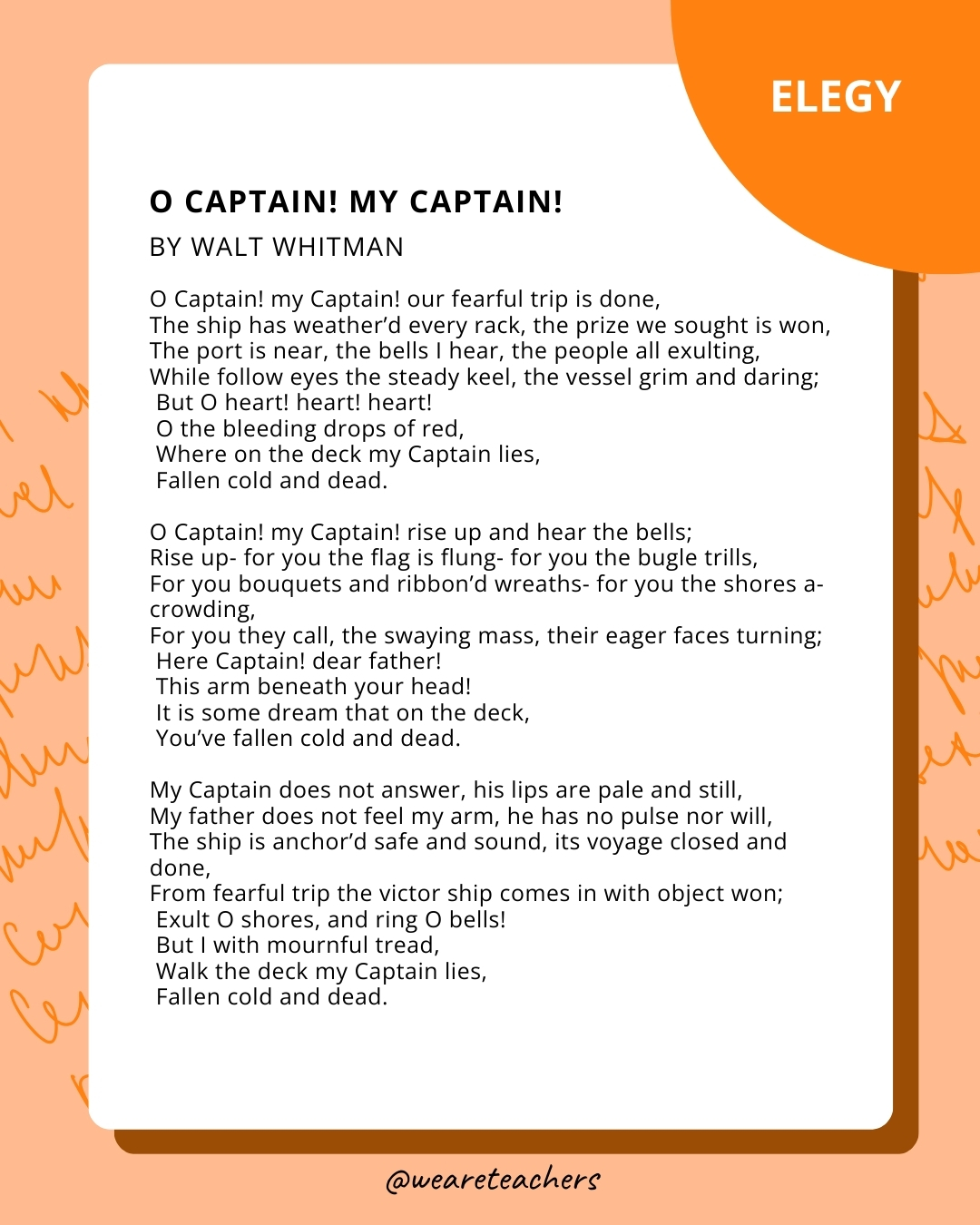 Poem Example: O Captain! My Captain!, by Walt Whitman