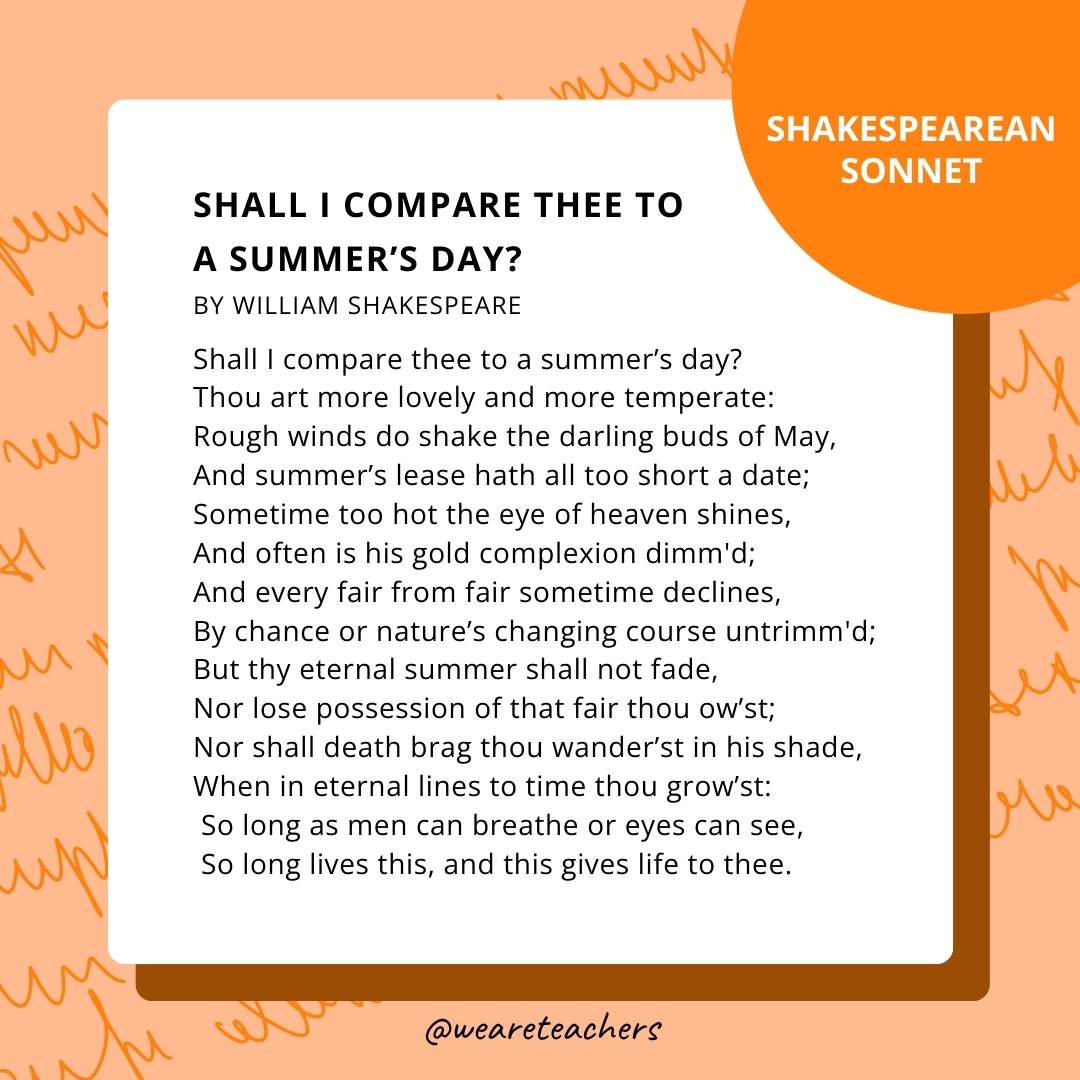 Poem Example: Shall I Compare Thee to a Summer’s Day? (Sonnet 18), by William Shakespeare
