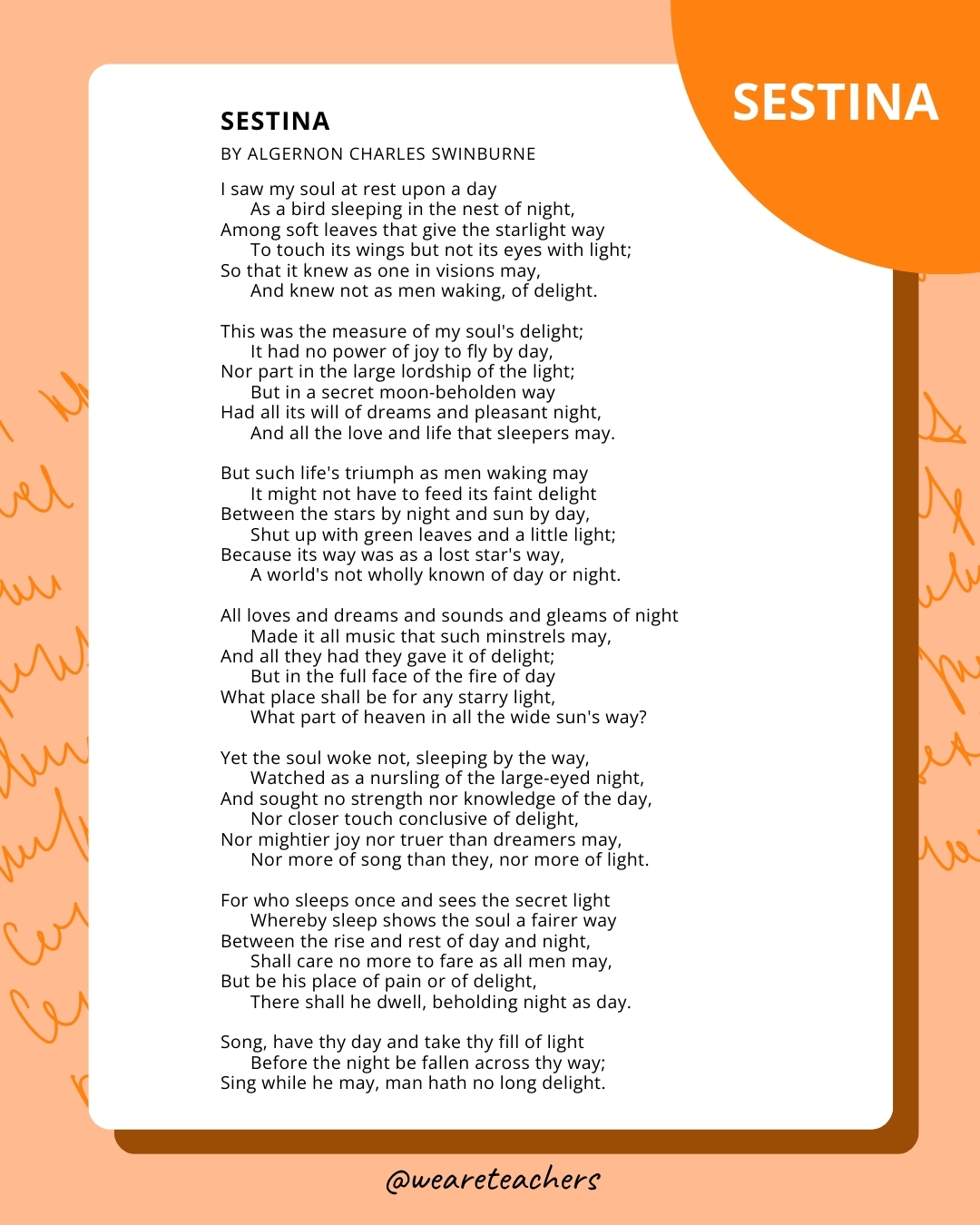 Poem Example: Sestina, by Algernon Charles Swinburne