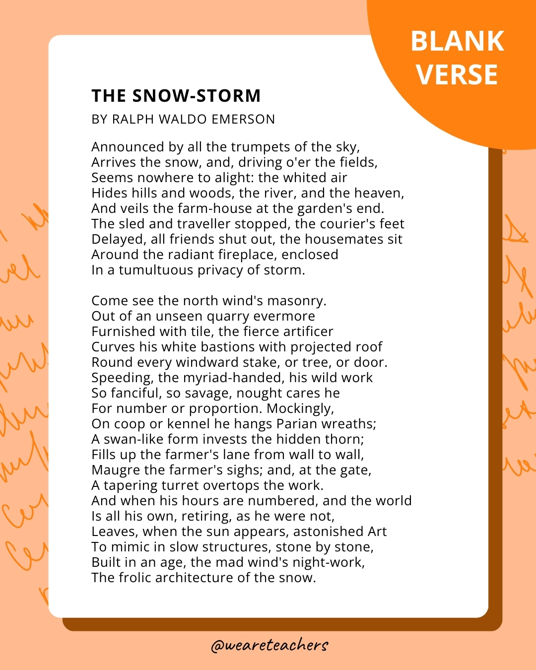 Poem Example: The Snow-Storm, by Ralph Waldo Emerson