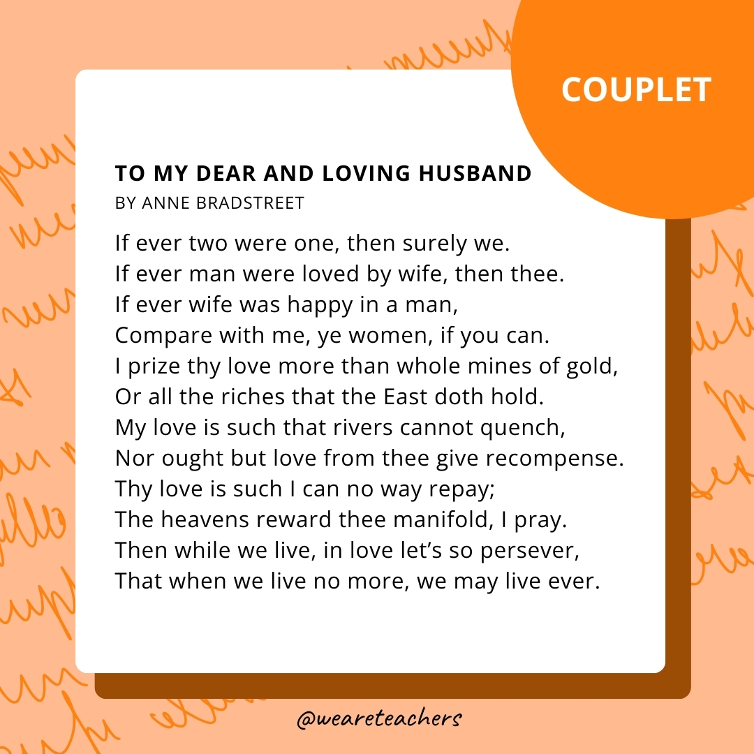 Poem Example: To My Dear and Loving Husband, by Anne Bradstreet