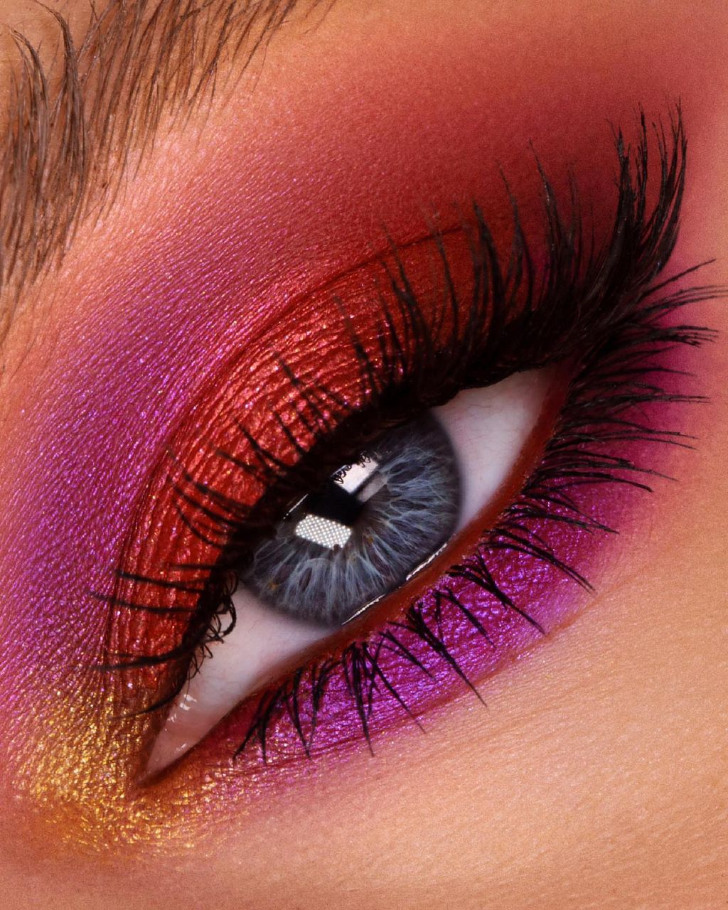 A sharp white liner anchors the colors, preventing them from becoming too diffused, while lashes add depth. Glossy nude or mauve lips provide balance, keeping the eyes as the focal point without overwhelming the overall look.