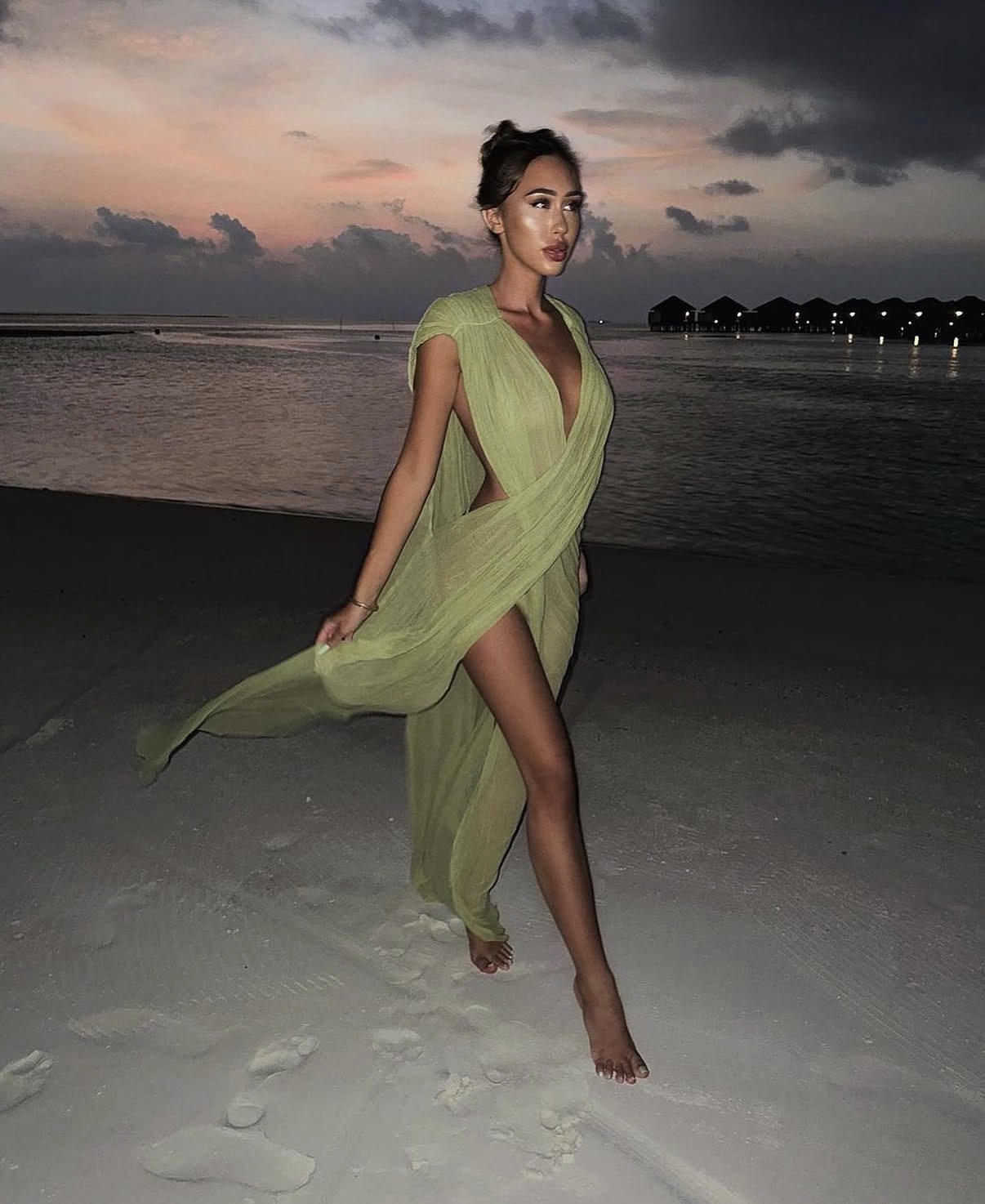In beach settings, breathable fabrics and relaxed styling are key, and sage green excels here. A sheer sage dress or lightweight cover-up over swimwear creates a look that is both intentional and effortless. The fabric flows with the breeze, and the color harmonizes with the surroundings. Paired with simple sandals and minimal accessories, the result is relaxed yet refined, perfectly suited for the environment.