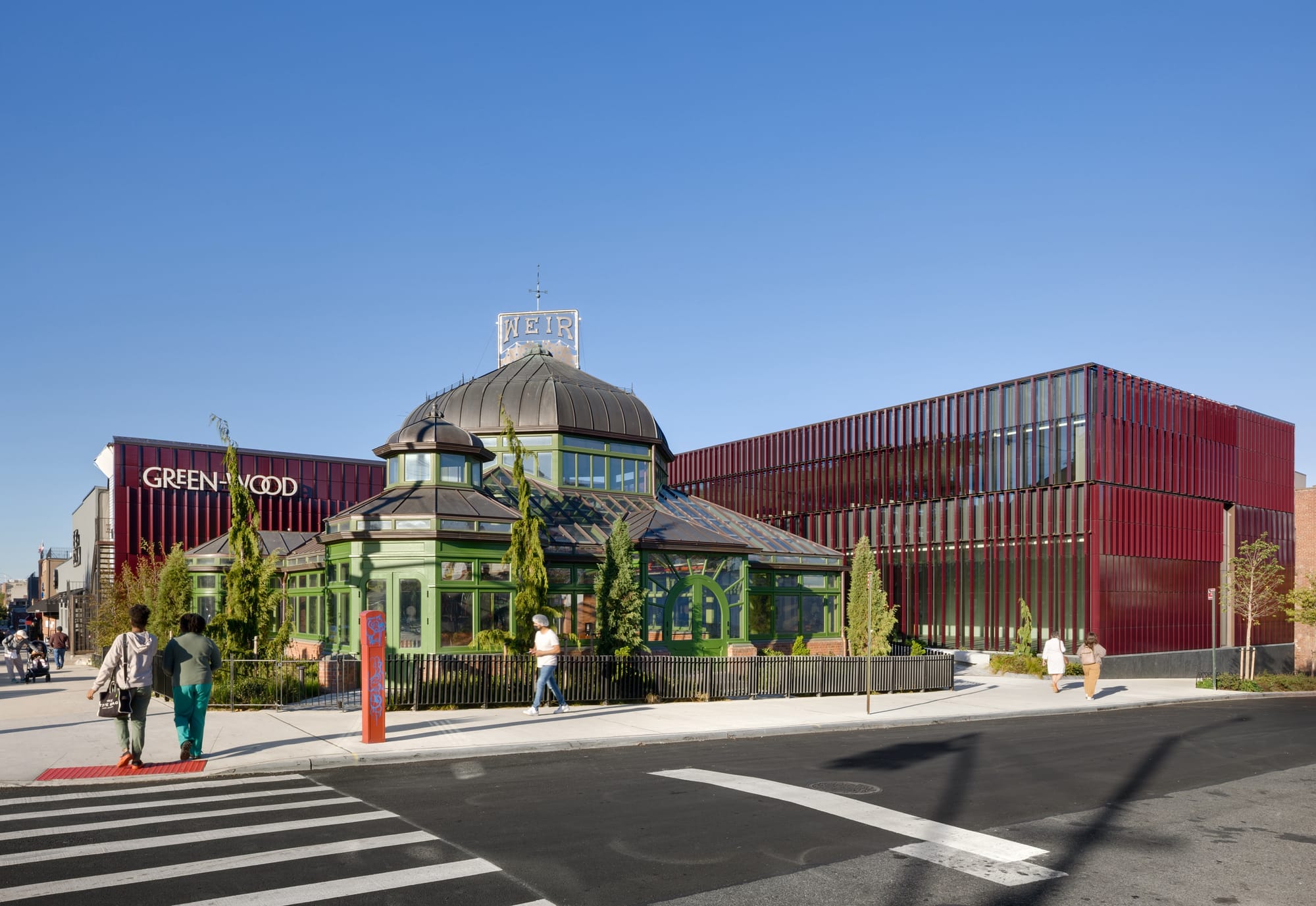 The structure also features a permanent exhibition space that narrates Green-Wood’s history, alongside a white cube gallery for art installations.