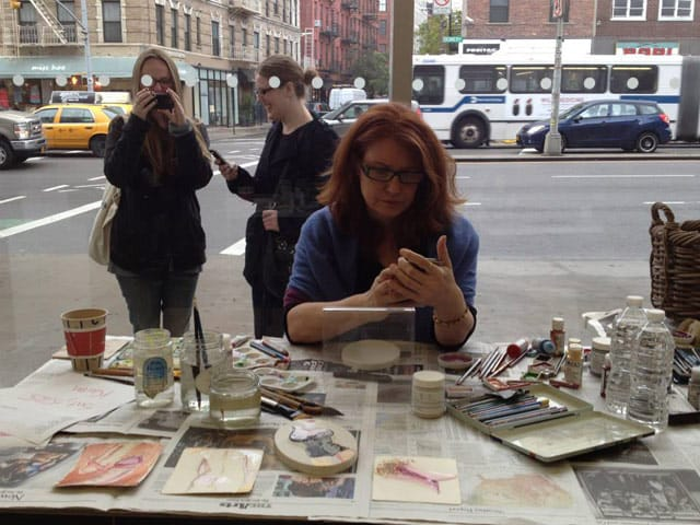 Karen Finley reading a sext as part of her “Sext Me If You Can” project at the New Museum (image via the New Museum’s Facebook page)