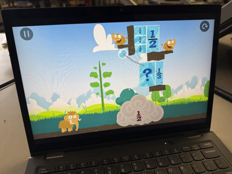 Slice Fractions is intellectually stimulating, as it requires students to apply logic and reasoning to navigate the path for the woolly mammoth.
