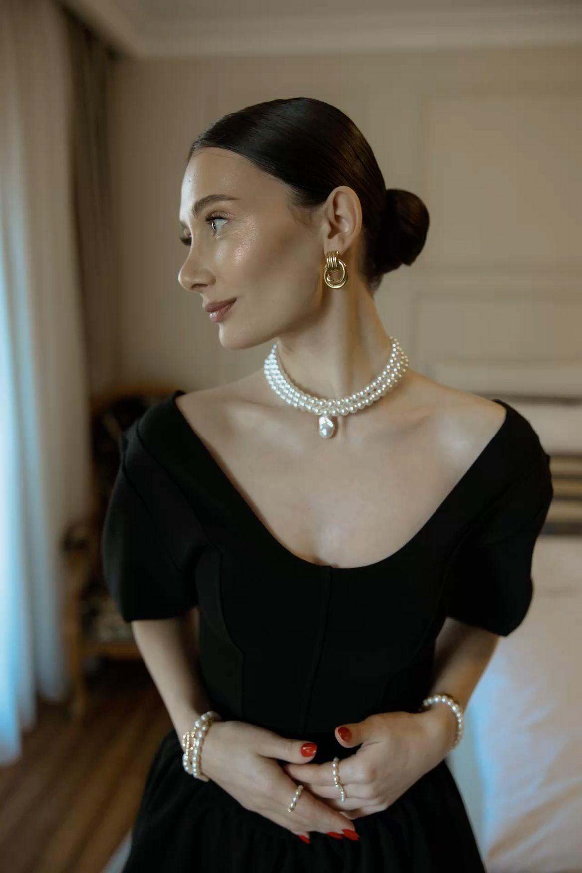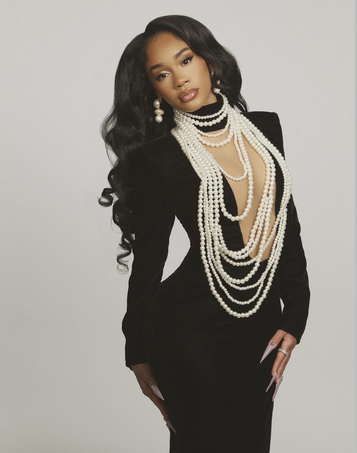 Layering pearls with chains, baroque shapes, and sculptural pendants creates a modern aesthetic. Paired with jumpsuits, leather jackets, denim, or oversized outerwear, layered pearls turn a classic accessory into a statement piece of street style.